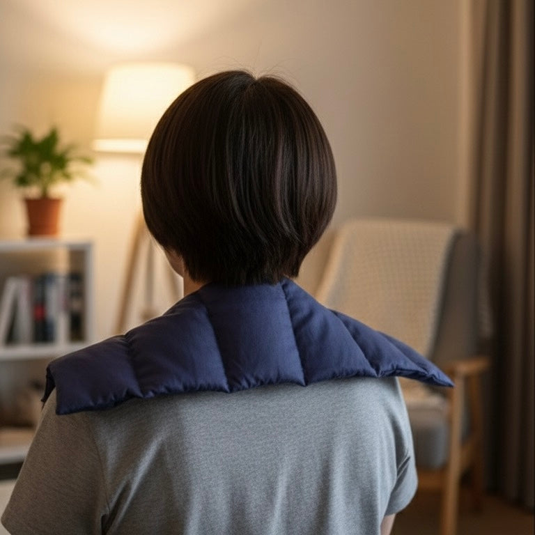 Targeted weight and warmth to dissolve upper-back tension and soothe neck stiffness.